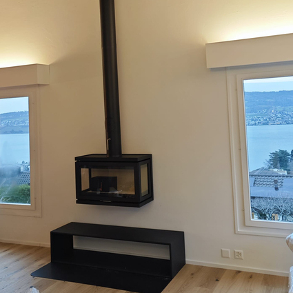 The R-500 fireplace is very versatile. Its design is straightforward and clear. Whether as a front, corner (left/right) or three-sided version - in every variant, state-of-the-art firebox technology, double glazing and infrared-coated ceramic glass promise highly efficient combustion.
