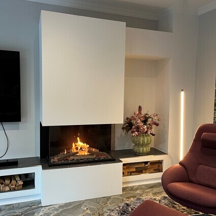 The incomparable VISIO GAS view of the flames is created by innovative floor and log burner technology. The LED glow effect, which you can switch on or off separately, ensures a realistic glow effect. Another special feature of VISIO GAS is the detailed artificial logs, which are so deceptively realistic that the firebox looks convincing even when the gas fire is not burning.